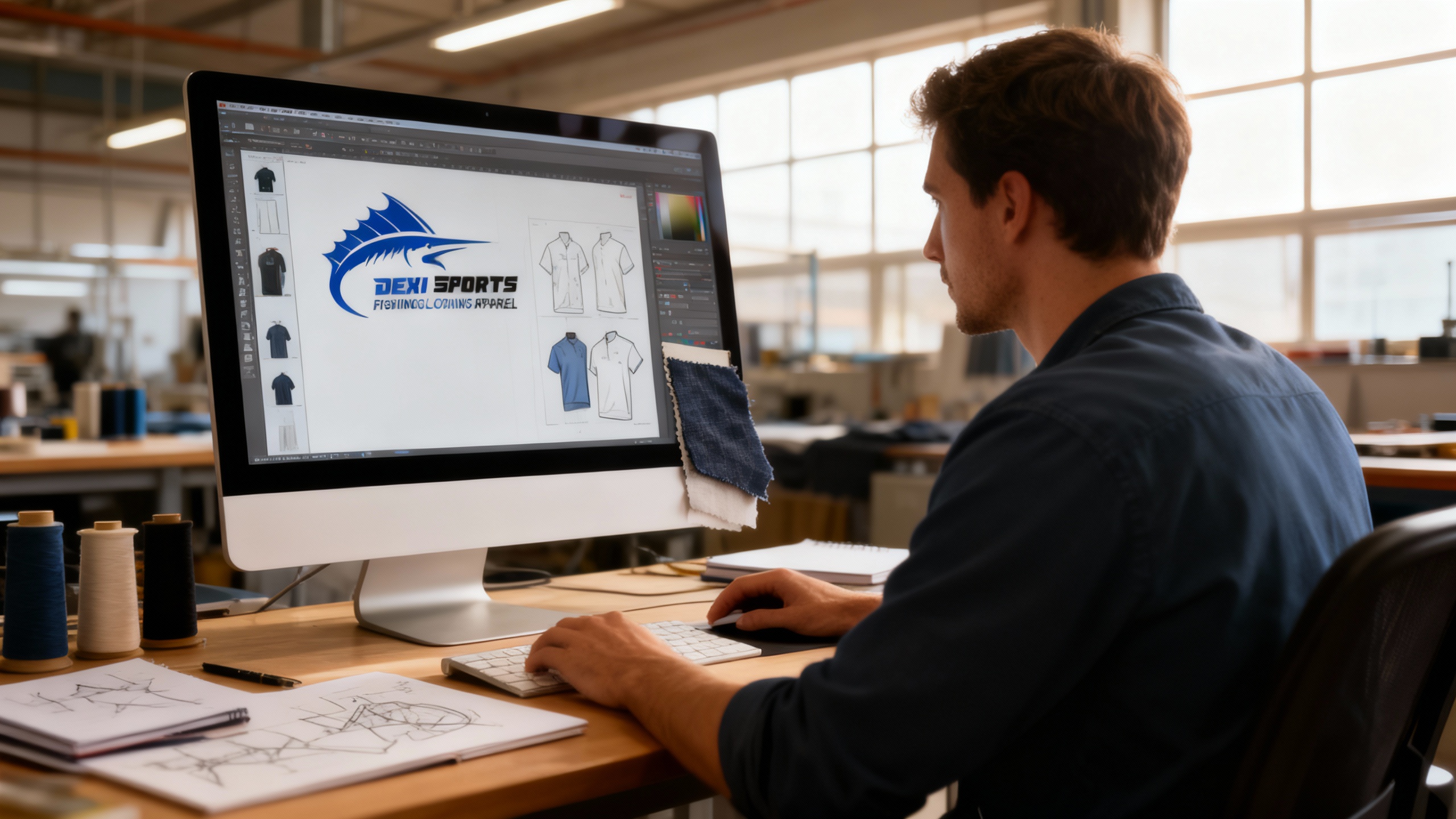n this initial phase, our designers create custom digital patterns for your DEXI SPORTS fishing apparel line. Using professional design software, they develop vibrant designs featuring your brand identity and fishing-themed elements.